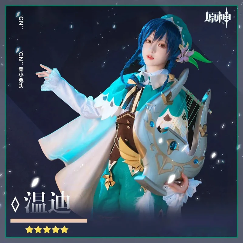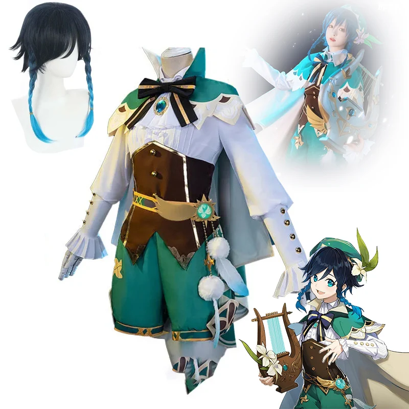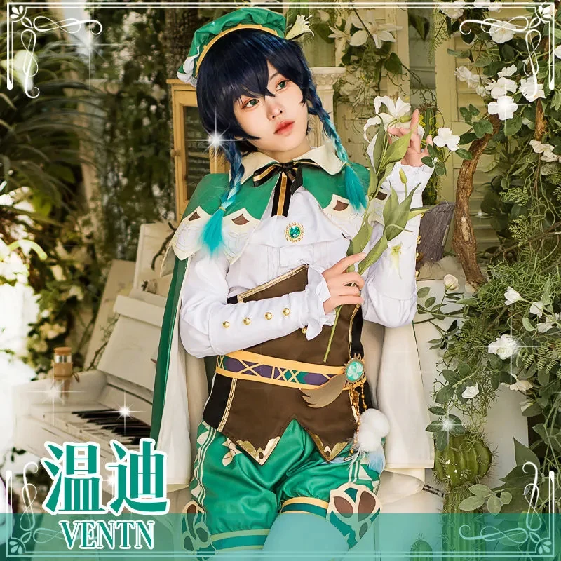 Аниме игра Genshin Impact, костюм Венти для косплевечерние, вечернее платье с париком, одежда для Хэллоуина, карнавала, костюм для взрослых женщин
