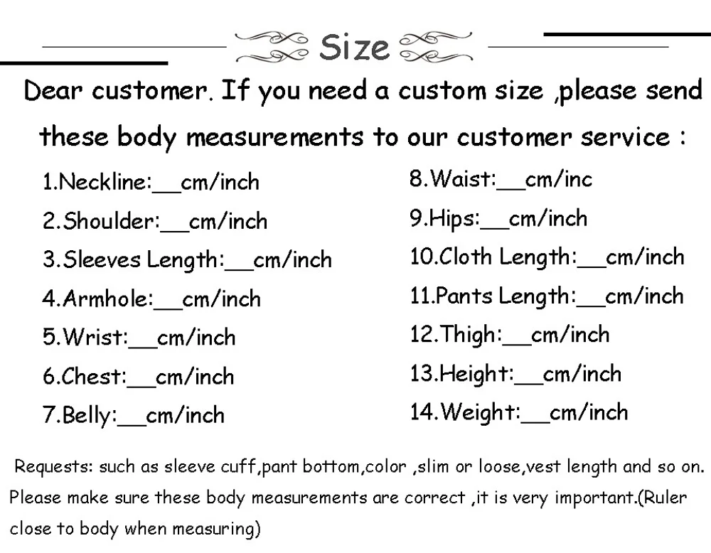 2. Наши костюмы будут сделаны так же, как на изображении 95%. Таким образом, может быть небольшая разница в цвете между фотографией и готовым костюмом (это не ошибка), потому что на разных экранах дисплея будет немного отличаться цвет.