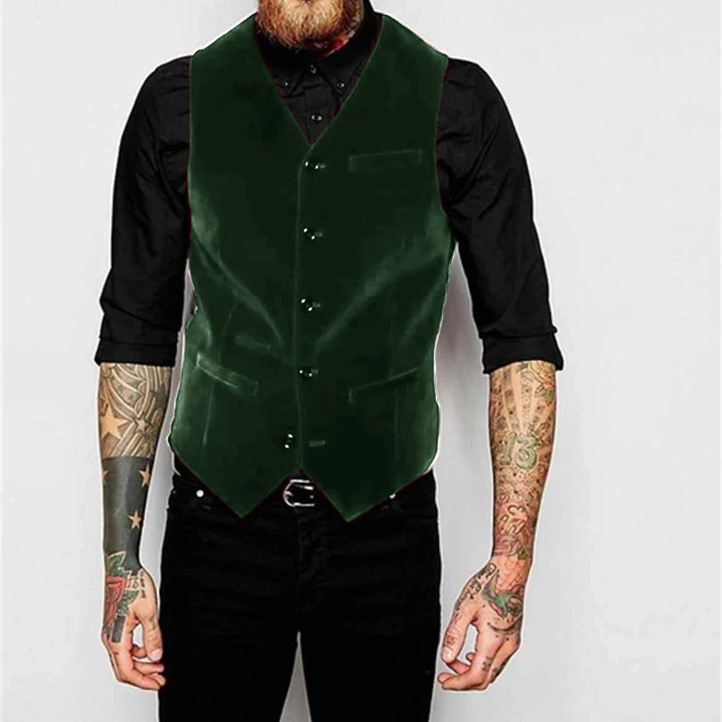 Бархатный жилет бордового цвета, элегантный Мужской Цельный однобортный жилет с V-образным вырезом, повседневный мужской жилет, теплая одежда