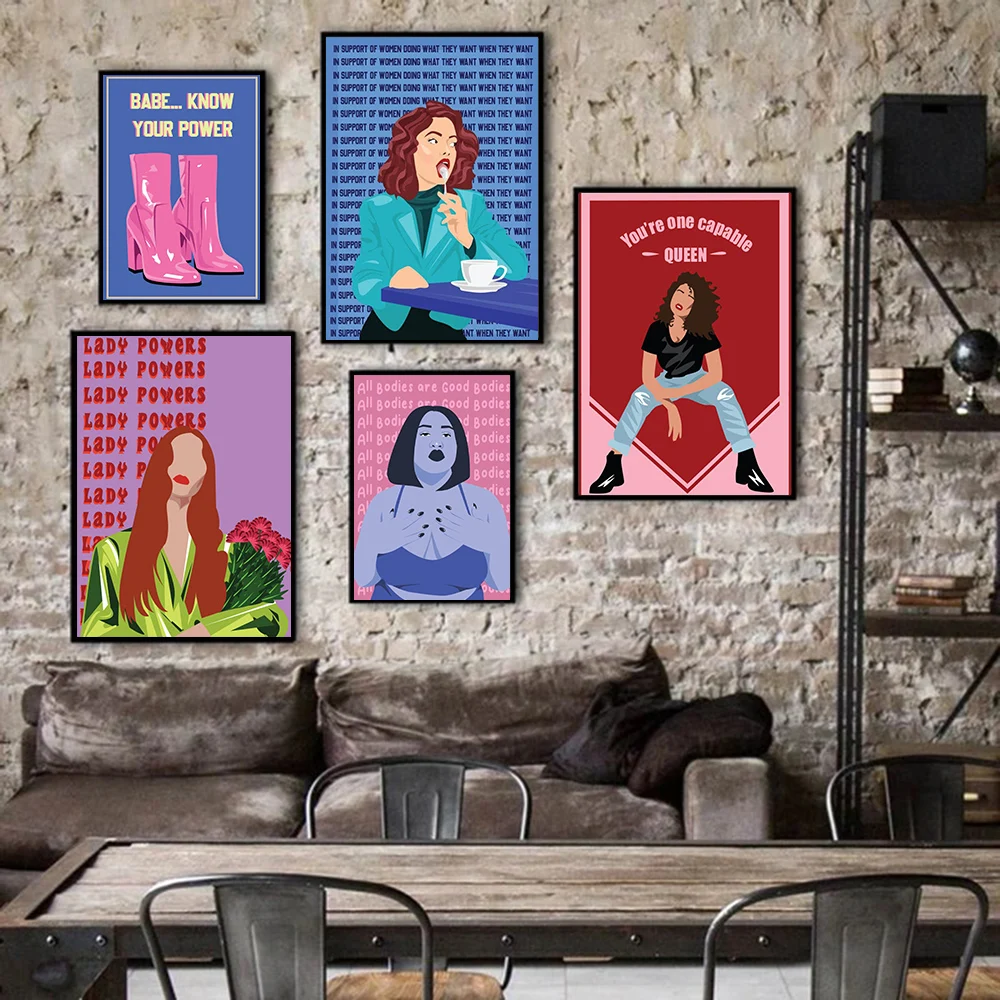Em power ing, модная Феминистская девушка, сила, настенная Картина на холсте, принты для девушек, подарок, современные картины, постер для гостиной и спальни