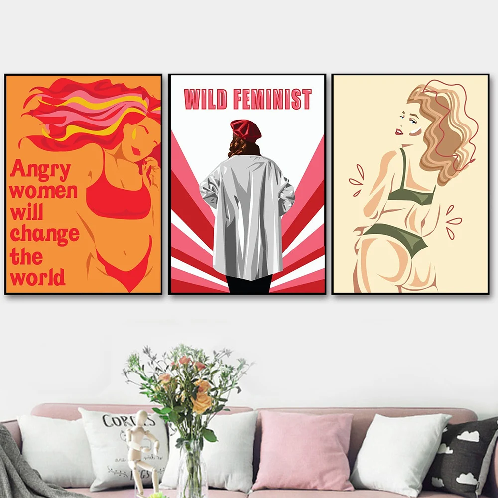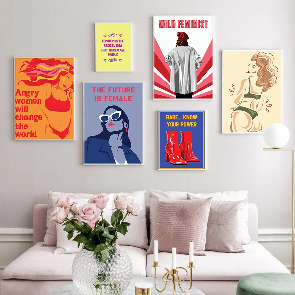 Эстетическое смешное искусство, феминистская Картина на холсте, роз...