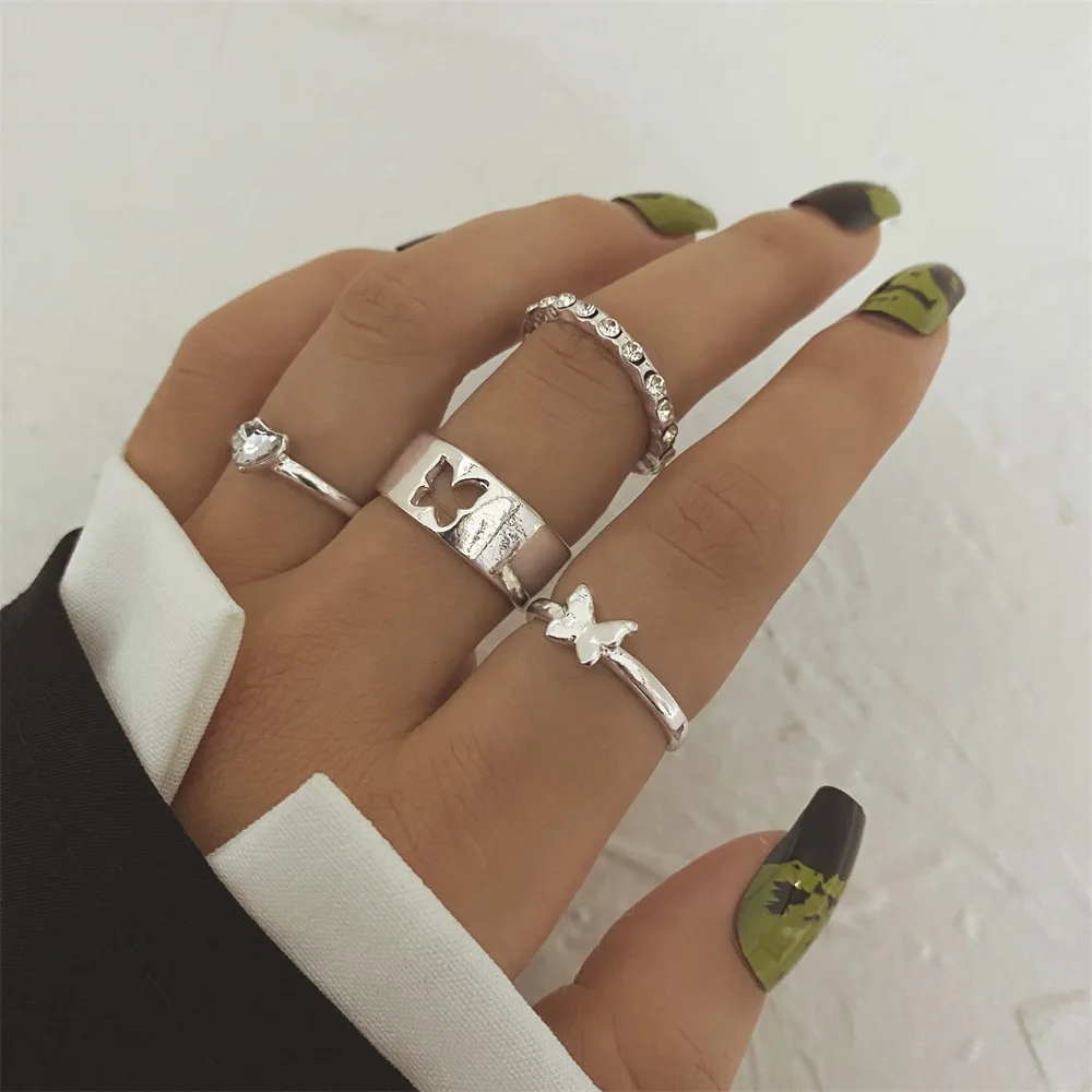 Набор Колец Стразы в стиле ретро, простые кольца в стиле хип-хоп с ...