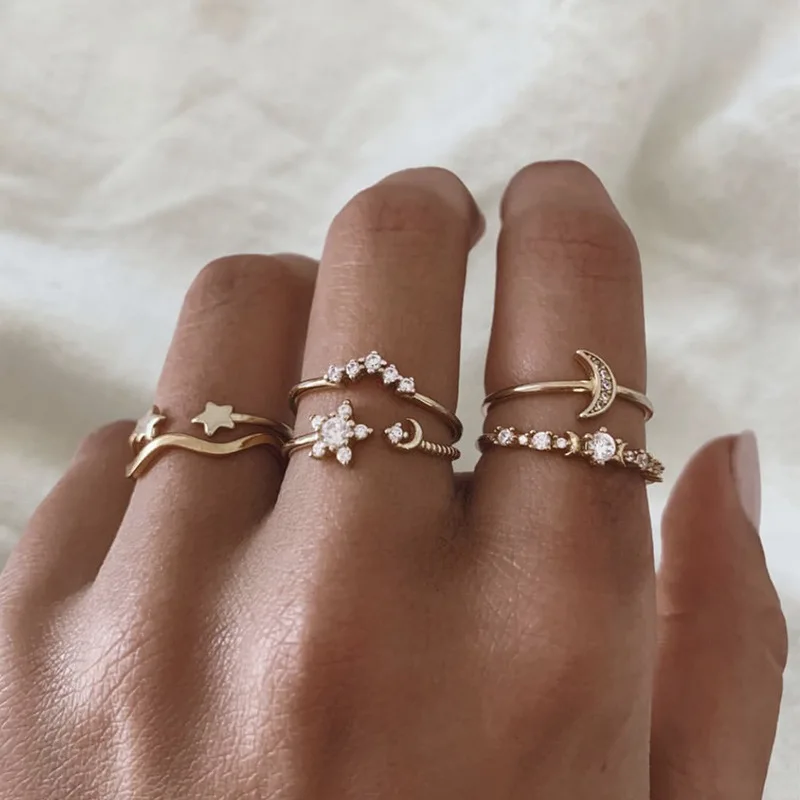 Женские кольца с Луной и звездами, набор колец под золото, богемные...