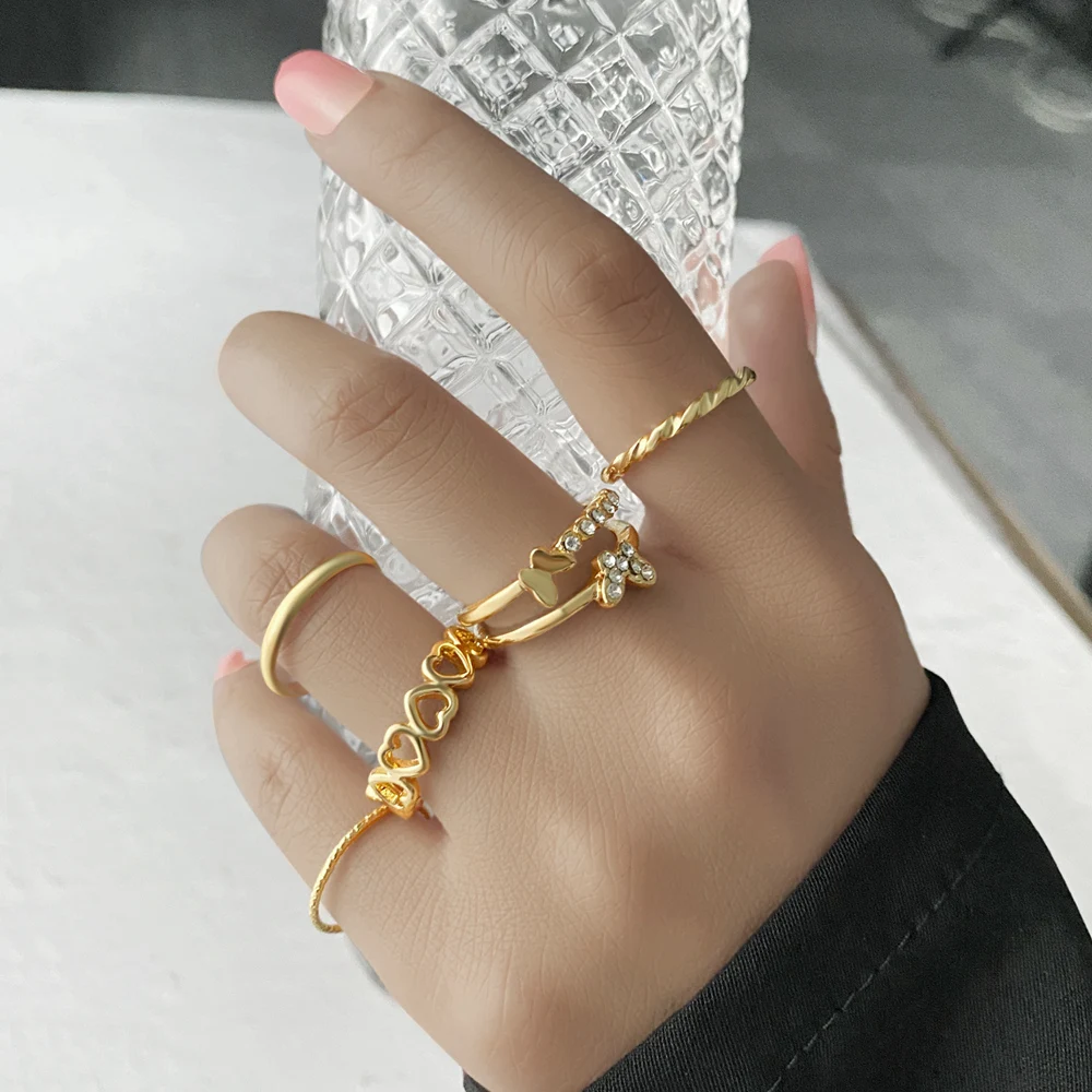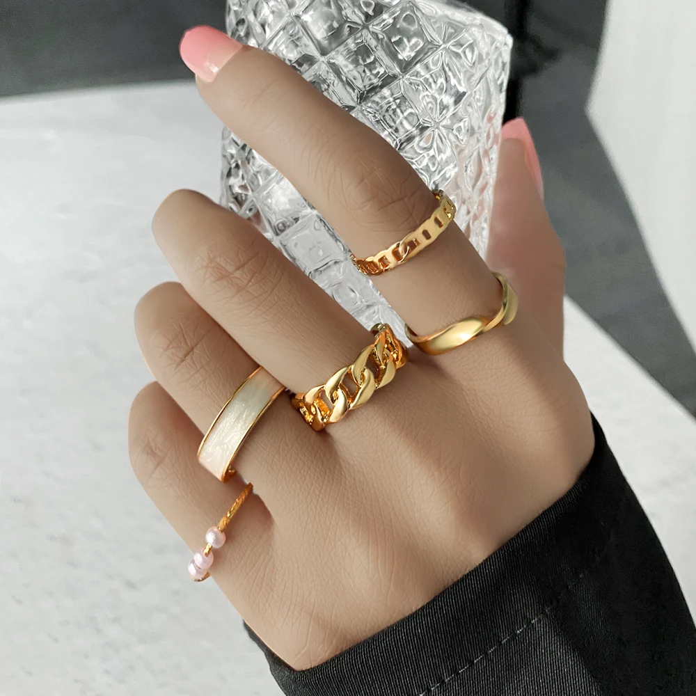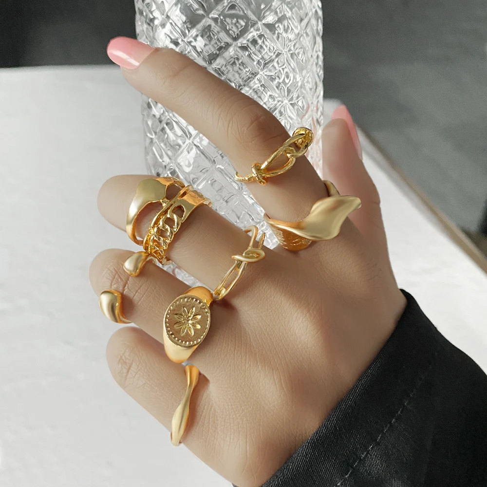 Набор геометрических колец золотого цвета в богемном стиле для женщ...