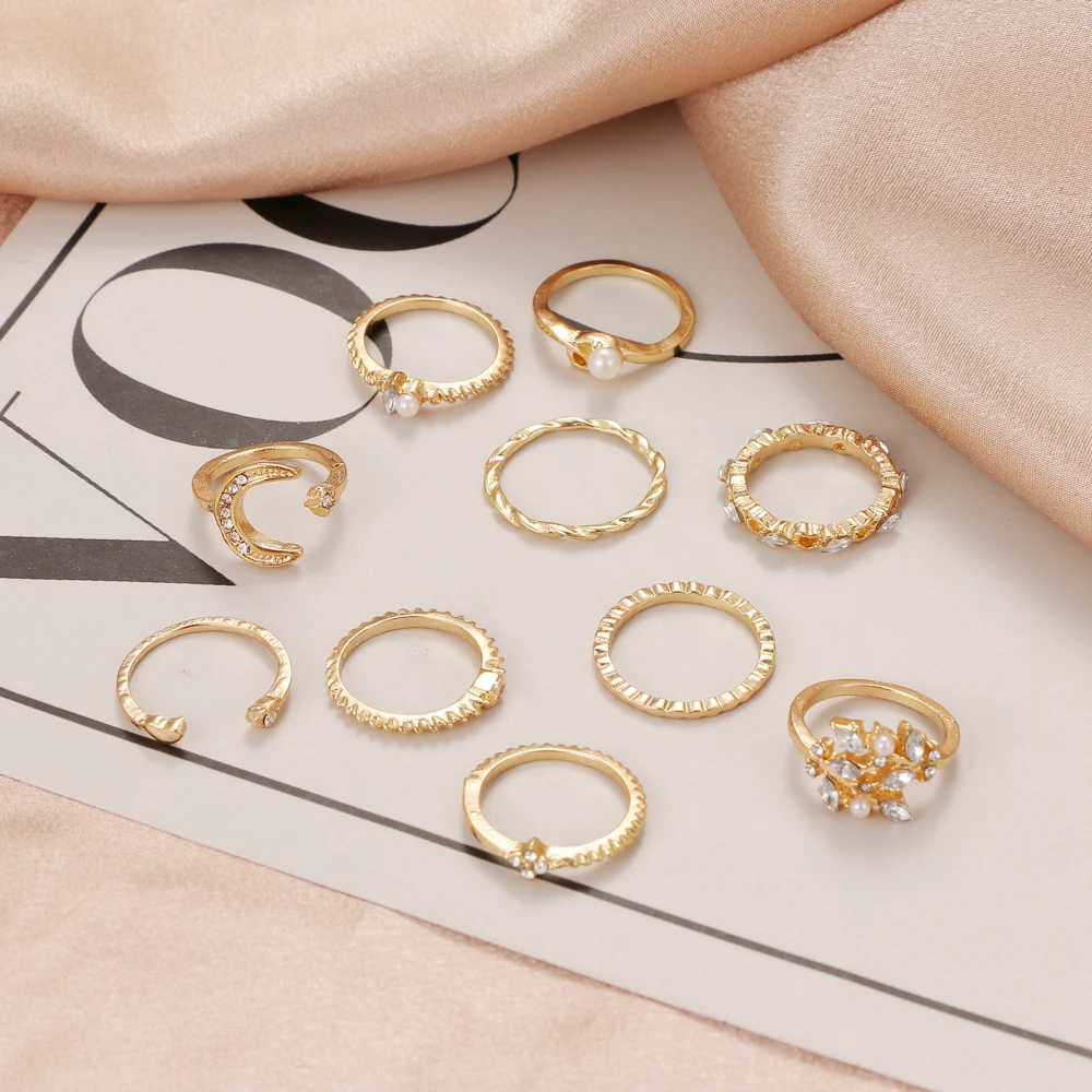 Модное кольцо Луна Звезда Любовь 10 шт. в комплекте золотые кольца ...