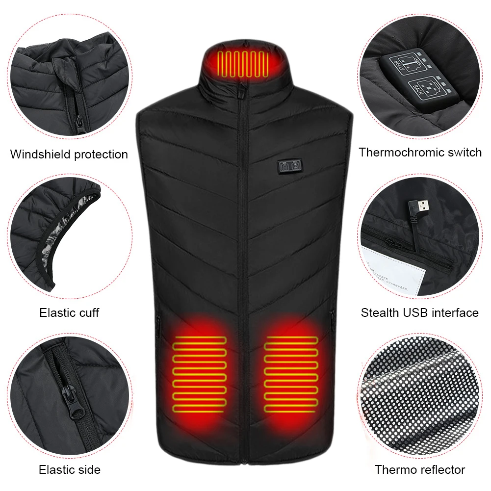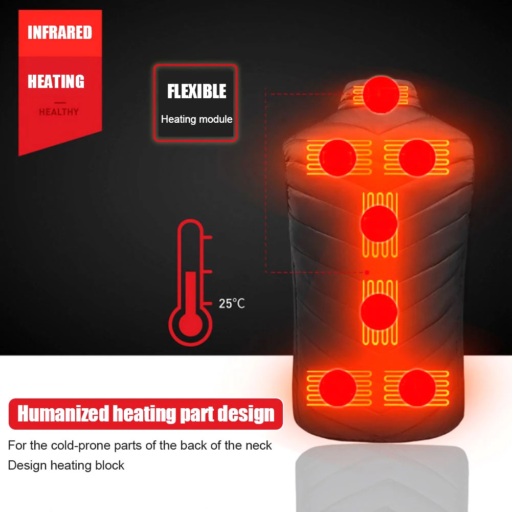 Жилет с подогревом 11 зон, жилет с USB-подогревом, зимний теплый мужской жилет, Женская куртка, зимняя теплая куртка, куртка с подогревом, куртка, терможилет