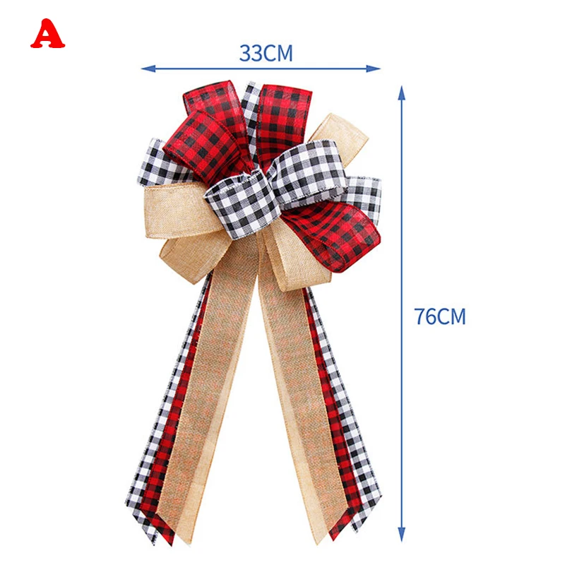 Рождественская елка, большой красный Топпер, льняной клетчатый бант, ручная работа, Подарочная коробка, декоративная Искусственная елка, новогодний декор для вечеринки и свадьбы