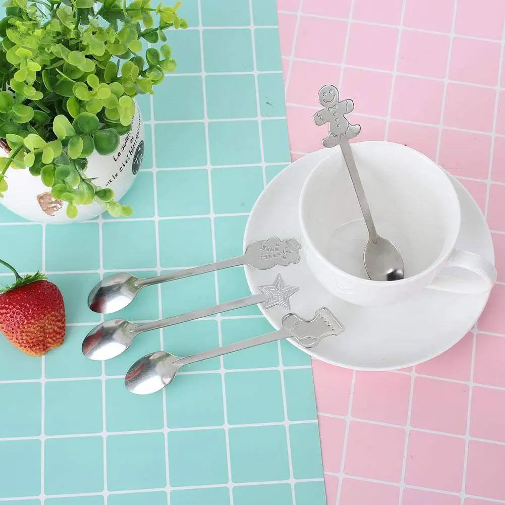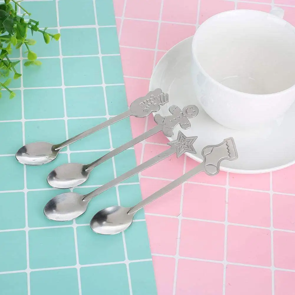 Рождественская кофейная ложка, стальной набор столовых приборов, бытовая ложка для торта, послеобеденного чая