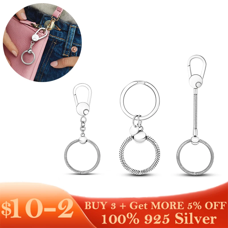 Кольцо для ключей женское, подлинный Серебристый Брелок в виде маленькой сумки, модель Pandora, Шарм для рукоделия, подарок для изготовления ювелирных изделий
