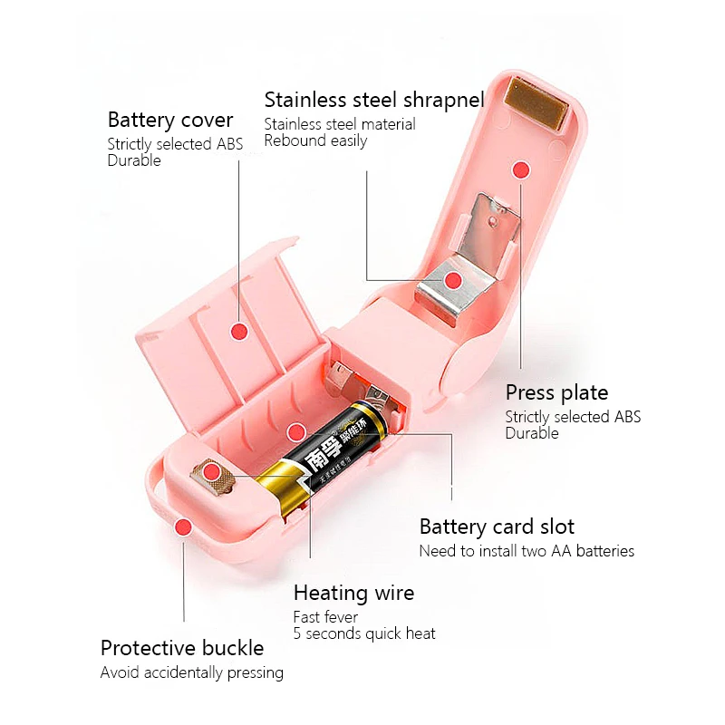 Простота в использовании: Откройте крышку, чтобы подогреть изделие, нажав 5 секунд перед использованием, а затем просто проведите его по краю любого мешка, и он герметичный.Многофункциональность: храните все предметы (продукты, чипсы, конфеты, закуски, остатки) свежей и сухой. Избегайте контейнеров, которые действительно не закрывают еду от воздуха. Любой тип пластикового или алюминиевого пакета зависит от мощности герметизации.Уплотнение в считанные секунды: просто нажмите и потяните мини-упаковщик еды через мешок, чтобы создать герметичное уплотнение. Вы будете блокировать еду/закуски в свежести и вкусе.Безопасный и удобный герметик: магнитное дно, легко крепится к холодильникам или любой неподвижной металлической поверхности, так что вы будете держать его под рукой на вашей кухне, на открытом воздухе, в шкафу или в любом месте, где вам это нужно.Как использовать:Вставьте 2 батарейки АА (батарейки в комплект не входят)Разблокировка безопасности/Защитная крышка в положение внизНажмите вниз на герметик для предварительного нагрева 5-7 секундРазгладьте поверхность желаемого мешка, чтобы быть герметичнойНанесите упаковщик на пакет и плотно прижмитеПри нажатии вниз, двигайтесь умеренно от одного конца к другомуПереместите защитный колпачок назад в положение вверхХарактеристики:Материал: высококачественный АБС-материал, устойчивость к высоким и низким температурам. Нетоксичный и прочныйРазмеры: 0*3,5*4 см/3,9*1,37*1,56 дюймов.Цвет: синий/розовый/зеленый.Батарея: 1,5 V, 2 батарейки АА батареи, используйте только щелочные (не входит в комплект).Посылка включает:1 x портативная упаковочная машина для пищевых пакетов.Примечания:Обратите внимание, что допускается отклонение в диапазоне 1–3 см из-за проведения замеров вручную.В связи с различиями мониторов и эффектами освещения реальный цвет товара может немного отличаться от цвета на фотографиях.