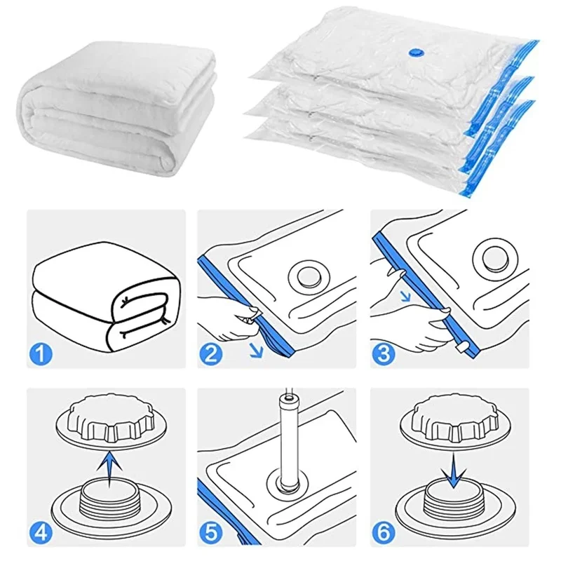 1. Вакуумная сумка для хранения герметичных вакуумных мешков защитит вашу одежду от воды и запахов. 2, воздух не попадет внутрь или наружу с двойным замком. Легко закрывается, застежка-молния гарантирует, что ваша одежда будет оставаться герметичной и компактной 3. Убедитесь, что воздух не попадает обратно в мешки для хранения с ультра-безопасным тройным уплотнением турбо-клапана, разработан, чтобы обеспечить вам лучшее воздухонепроницаемое всасывание 4, вакуум может быть нарисован ручным насосом и пылесосом