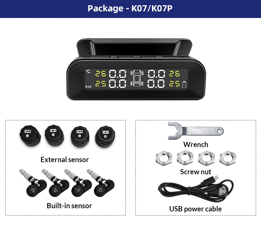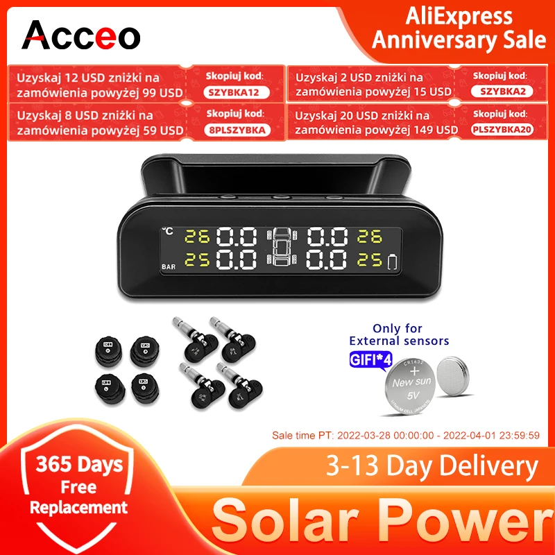 Система контроля давления в шинах ACCEO K07, на солнечной батарее, с ЖК-дисплеем