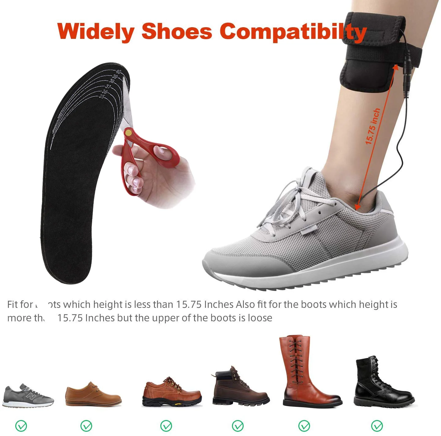 Для больших ног не годятся. Модель 41-45 подходит только тем, у кого 41-й размер. У остальных будут мёрзнуть пальцы, поскольку нагревательный элемент в них отсутствует. Ещё провод коротковат (от стельки), для горнолыжных ботинок вряд ли подойдёт