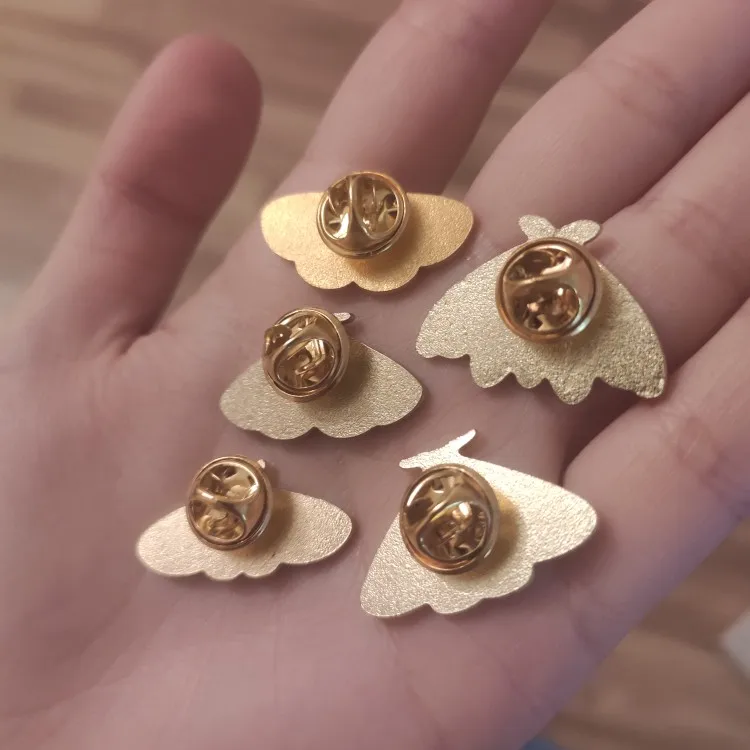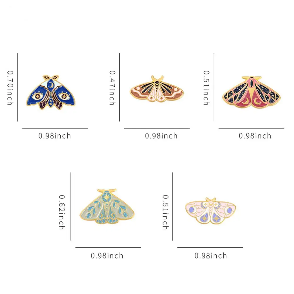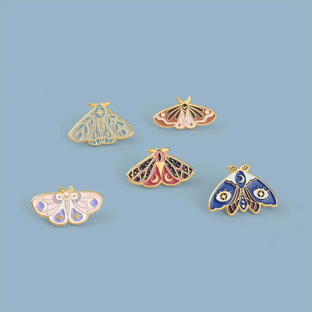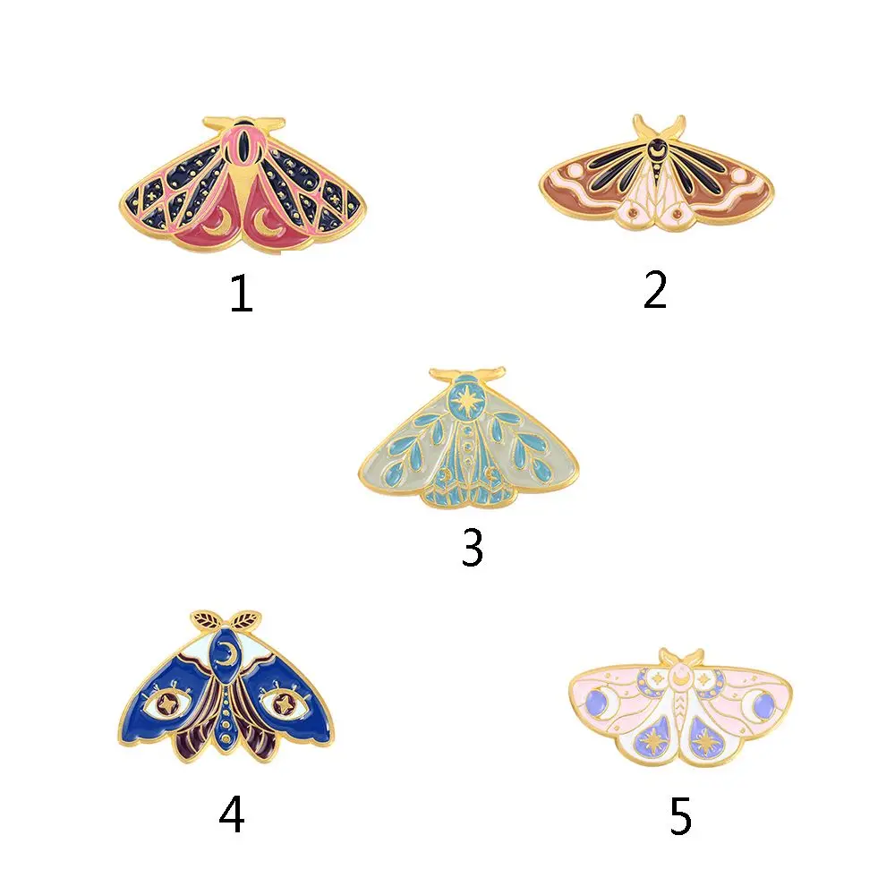 Металлическая эмалированная заколка в виде бабочки с изображением Луны звезды моли