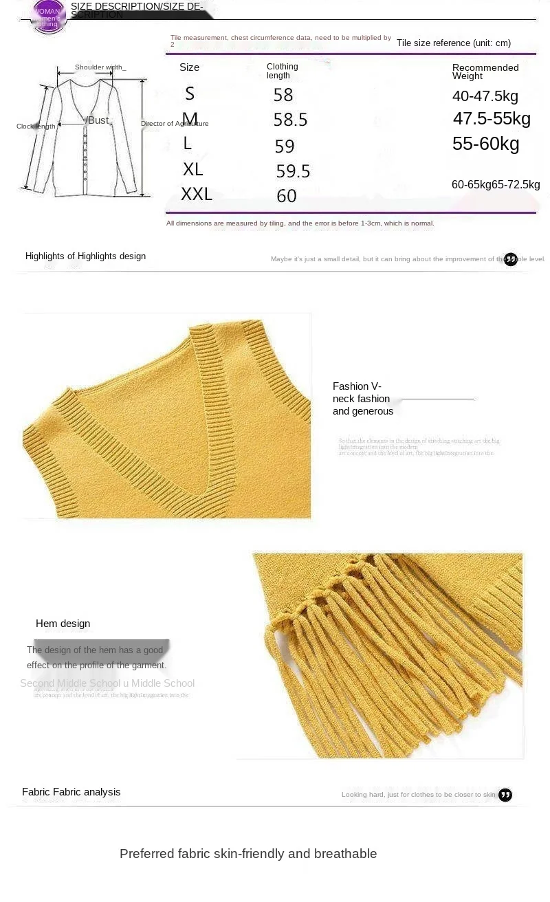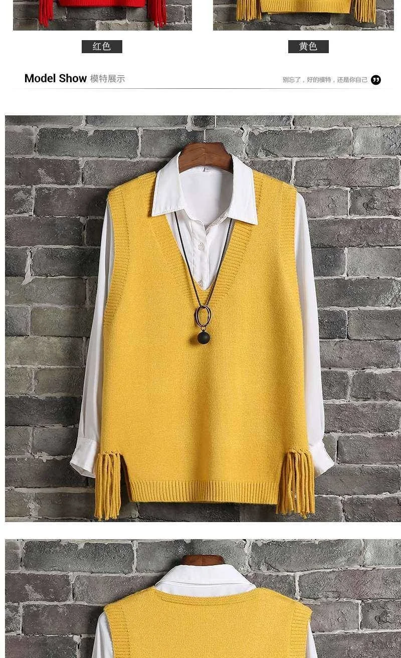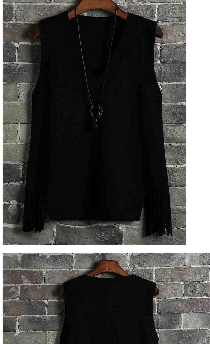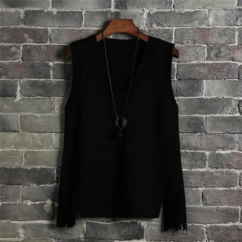Женский жилет, весенний Короткий трикотажный жилет с кисточками и V...