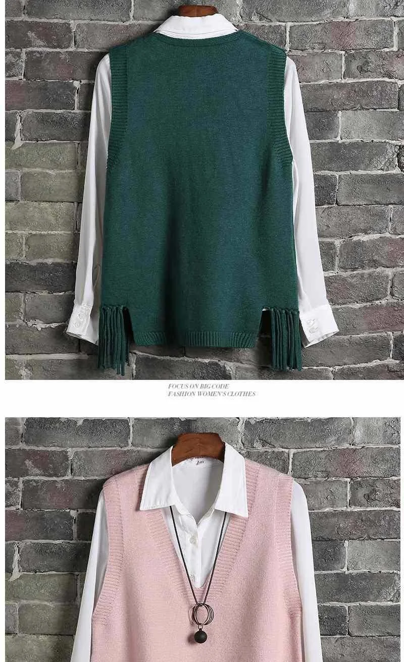 Женский свитер, жилет, осенняя Женская одежда, свободный свитер с V-образным вырезом, жилет, свитер, жилет, короткое пальто