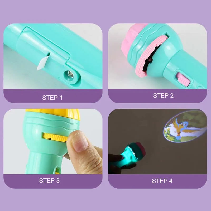 * Название, детский фонарик-проектор* Размеры: 4,5*5*16 см/1,77*1,97 * 6.3in* Материал: АБС-пластик* Возраст: 3 года +* Посылка включает в себя: 1 фонарик-проектор + 4 карты (по 8 узоров) + 3 батареи* Эффективное рекомендуемое расстояние облучения: менее 50 смЛинза с поворотом на 90 градусов. 8 моделей, изменения в любое время и в любом месте.Идеальный подарок детям на день рождения и Рождество.Его можно спроектировать на стены или потолки в темноте. Разумное расстояние проекции составляет около 50-150 см, вращается для регулировки определения.Приятный дизайн и милый изменяющий изображение проектор помогут детям непрерывно наслаждаться удовольствием от рук и пальцев, стимулируя мозги при просмотре изображений.Изготовлено из пластика, отличное качество изготовления, гладкая кромка не поцарапает детскую руку.
