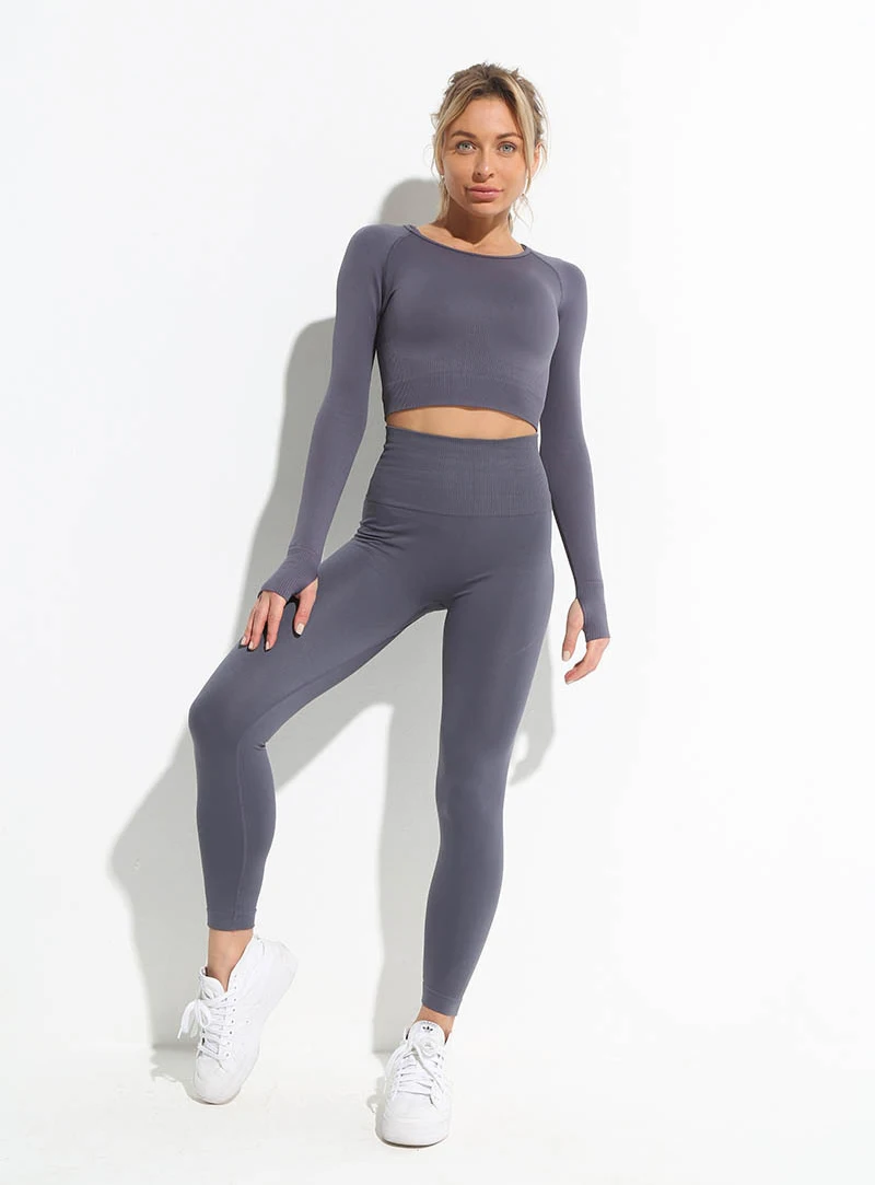 Энергетический бесшовный комплект для йоги, спортивный наряд для женщин, одежда для спортзала, фитнеса, короткий топ с длинным рукавом, леггинсы с высокой талией, спортивная одежда для бега