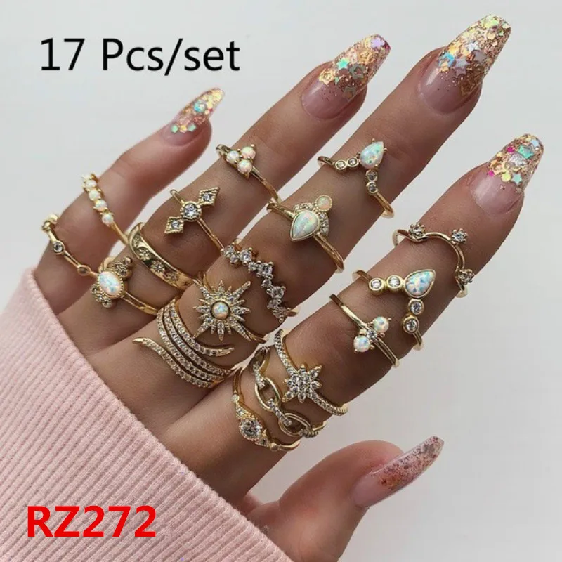 Комплект золотых колец для девочек-подростков, комплект ювелирных изделий из 17 предметов, кольца в богемном стиле с сердечками