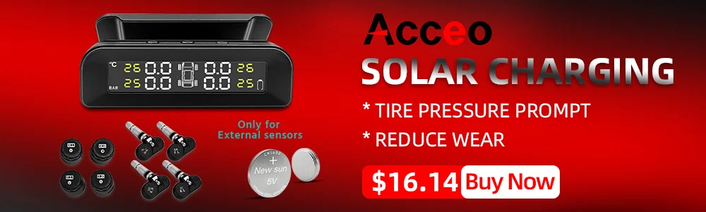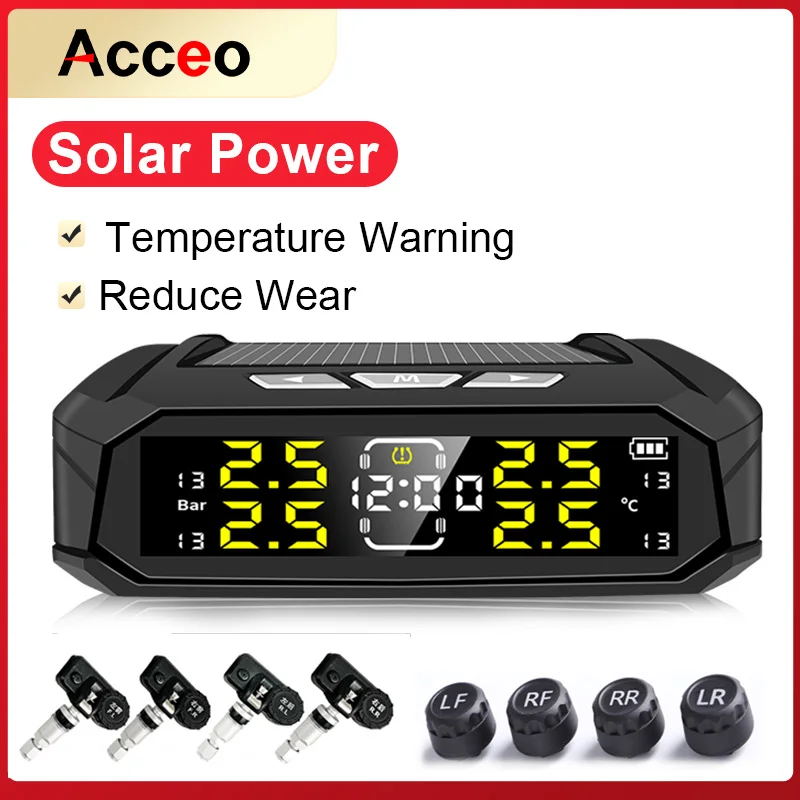 Электронные часы ACCEO на солнечной батарее, TPMS, умный монитор давления в шинах, предупреждение о температуре и давлении