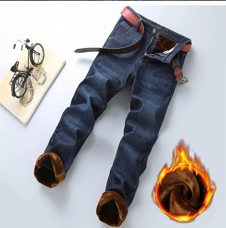 Классические мужские джинсы с флисовой подкладкой, Свободные повсед...