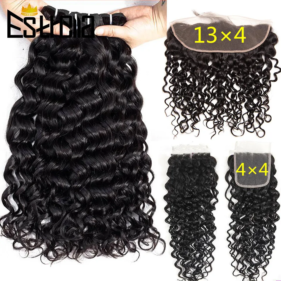 Пряди с фронтальной Красной мокрой и волнистыми пучками, пучки с 13X4 от уха до уха, фронтальные бразильские пучки волос с застежкой