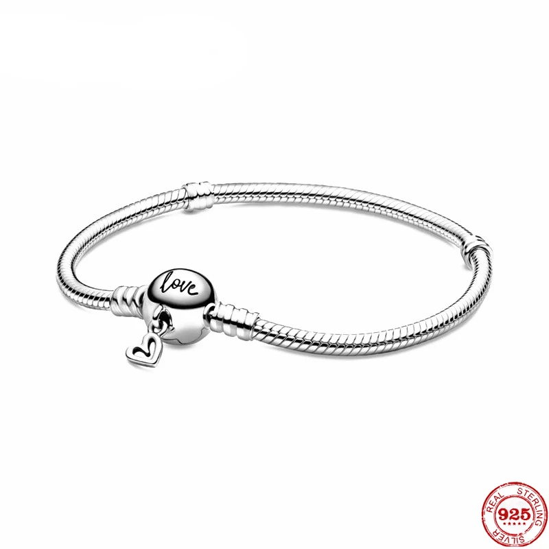 Лидер продаж, классический браслет из серебра 100% пробы с сердцем ...