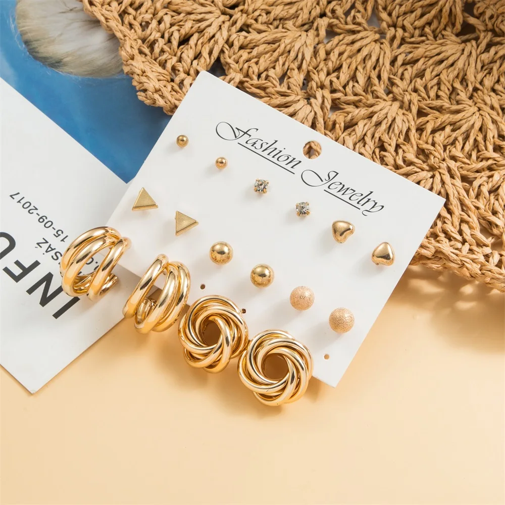 Женские золотые серьги-гвоздики в богемном стиле Модные золотые сер...