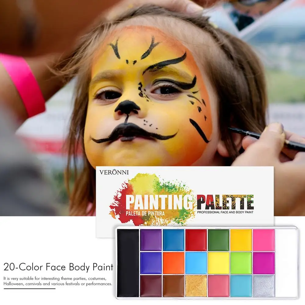20 цветов, краска для лица и тела, большая Нетоксичная палитра SFX ...