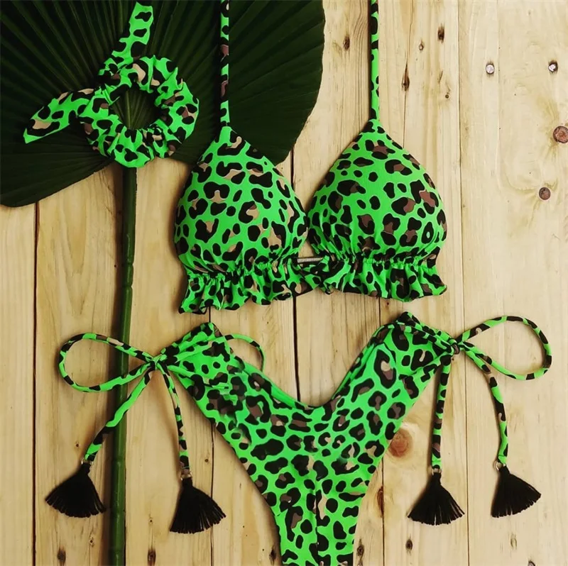 Купальник-бикини женский с леопардовым принтом, на шнуровке