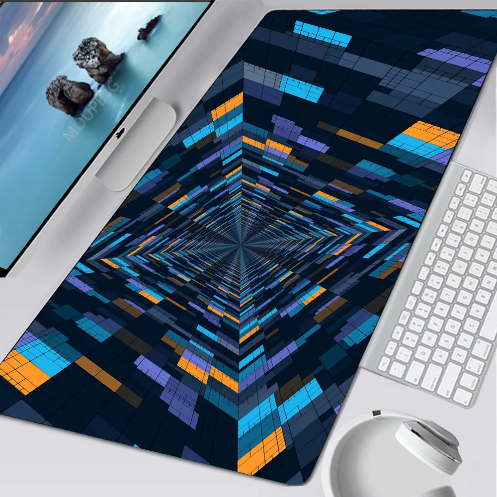 Коврик для мыши с геометрическим рисунком XXL, Большой Оверлок с краями, Настольный коврик, абстрактный резиновый коврик для компьютерной игровой мыши, Настольный коврик для клавиатуры, аксессуары для ПК
