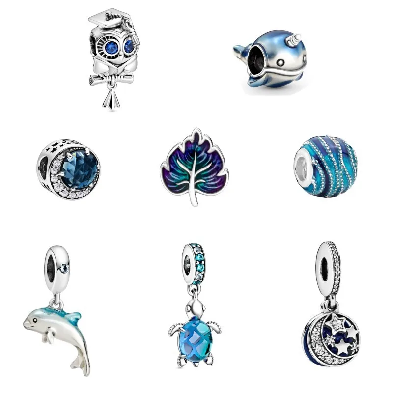 Лидер продаж MC, небесно-голубые листья, звезды, дельфин, Сова, бусины, подходят для оригинального ретро-браслета Пандоры, Изящные Ювелирные изделия сделай сам