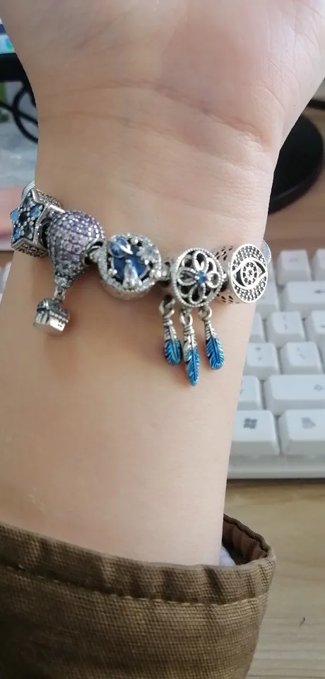 Женский браслет из серебра 925 пробы, с бусинами-шармами