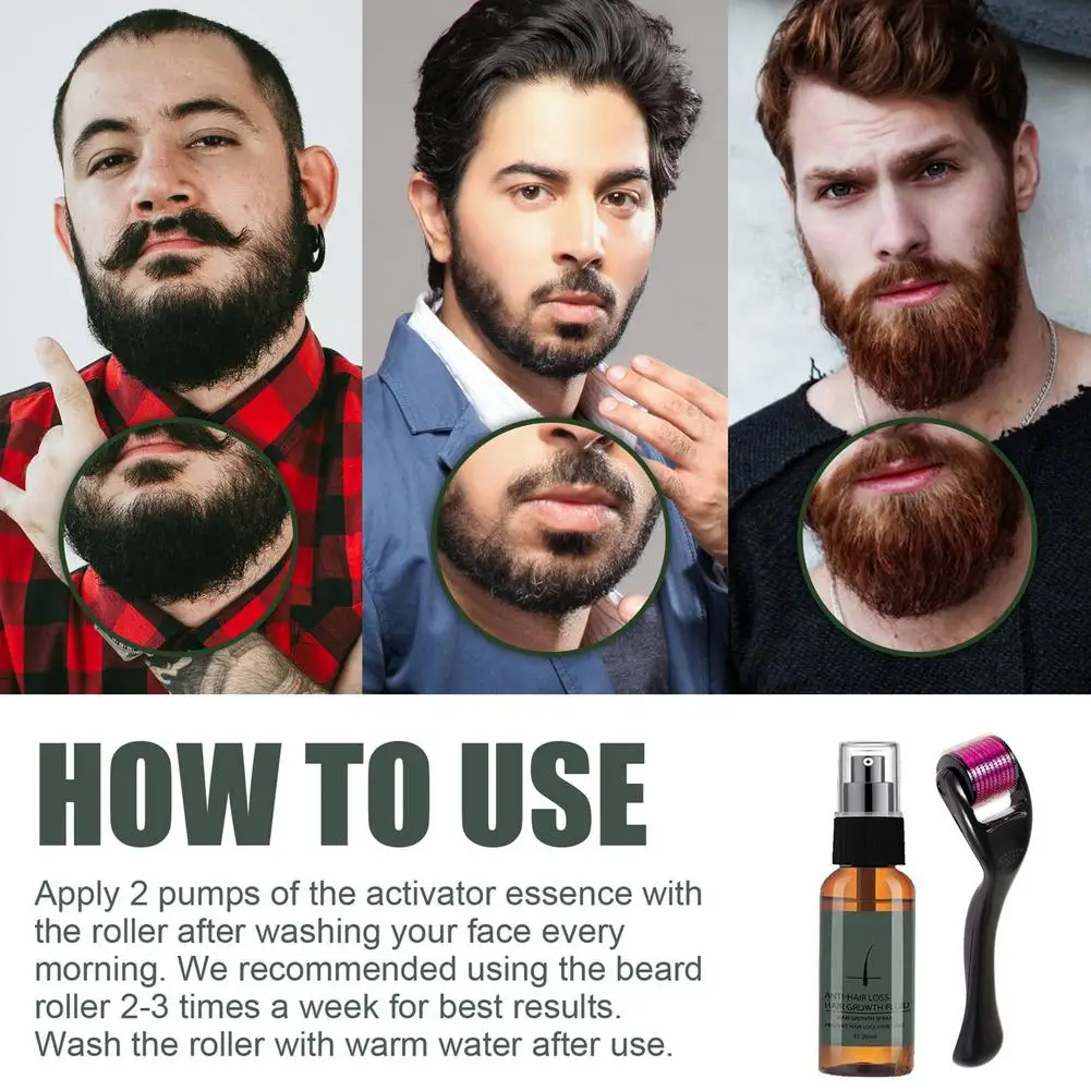 Натуральный ролик для роста бороды, мужское масло для роста бороды, питательный усилитель, спрей для бороды, против выпадения волос с роликом для бороды