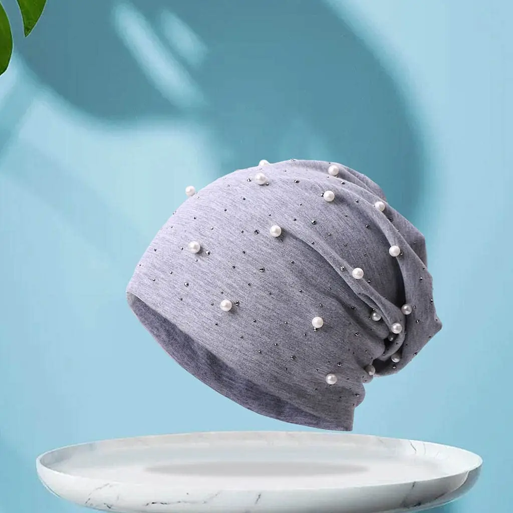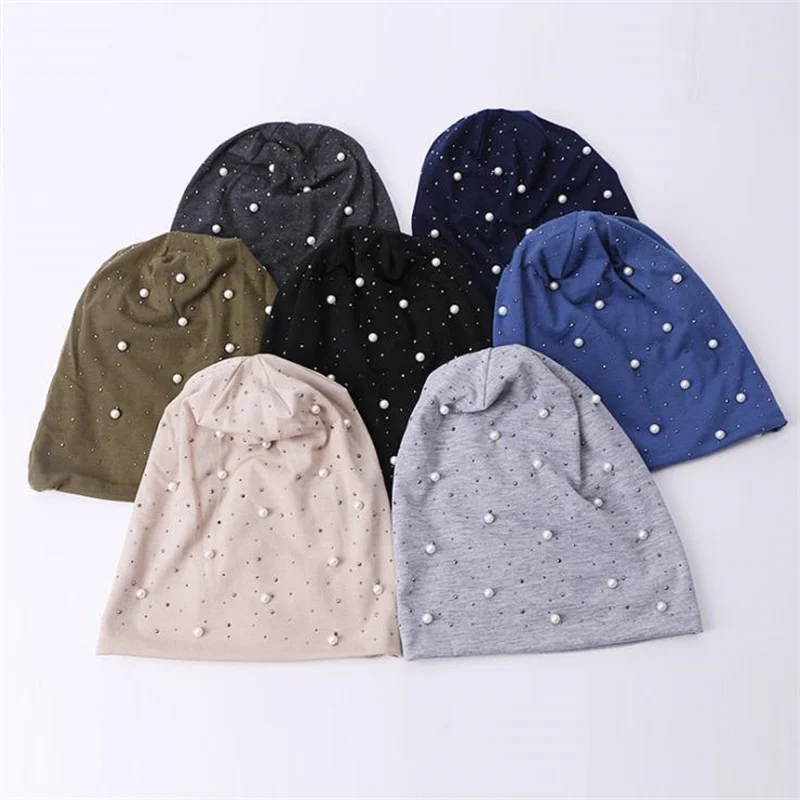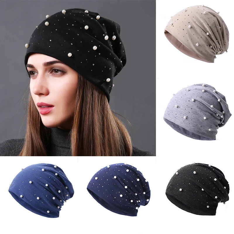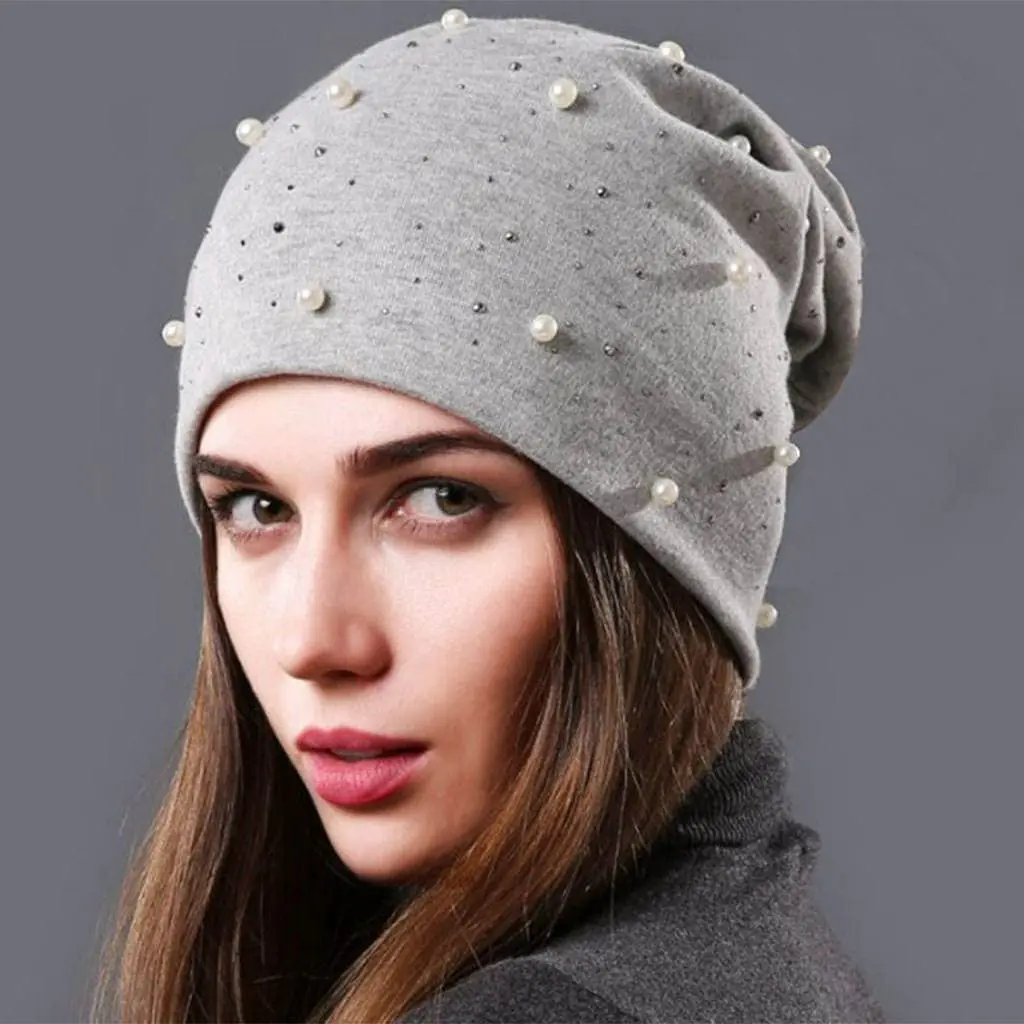 Женская облегающая шапка, повседневные облегающие шапки из полиэстера с блестящими жемчужинами для женщин, женская шапка