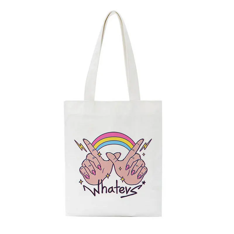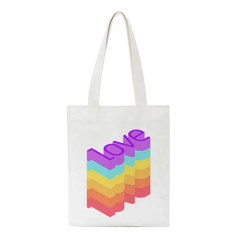 Сумка-шоппер женская с радужным принтом, модная большая холщовая сумочка-тоут на плечо с забавным мультяшным рисунком, летняя сумочка-шоппер