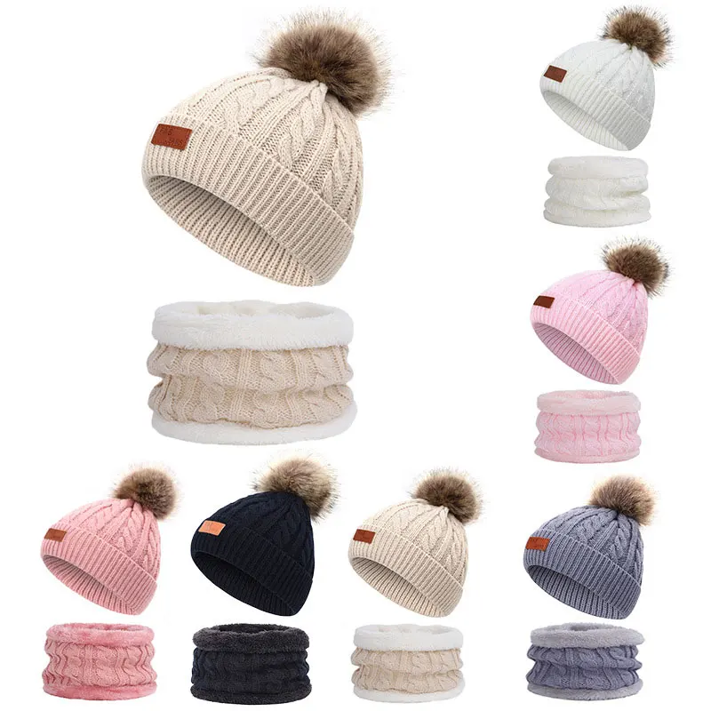 Шапка и шарф Детские вязаные на осень и зиму, хб