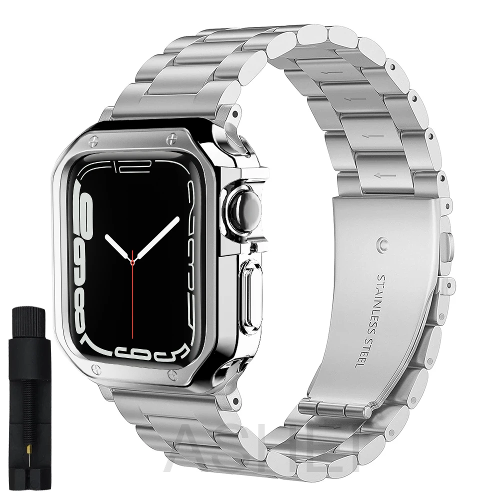 Чехол и ремешок для apple watch 7 45 мм 41 мм, браслет для iwatch se 6 5 4 44 мм 40 мм 3 42 мм 38 мм, чехол из нержавеющей стали, браслет на ремешке