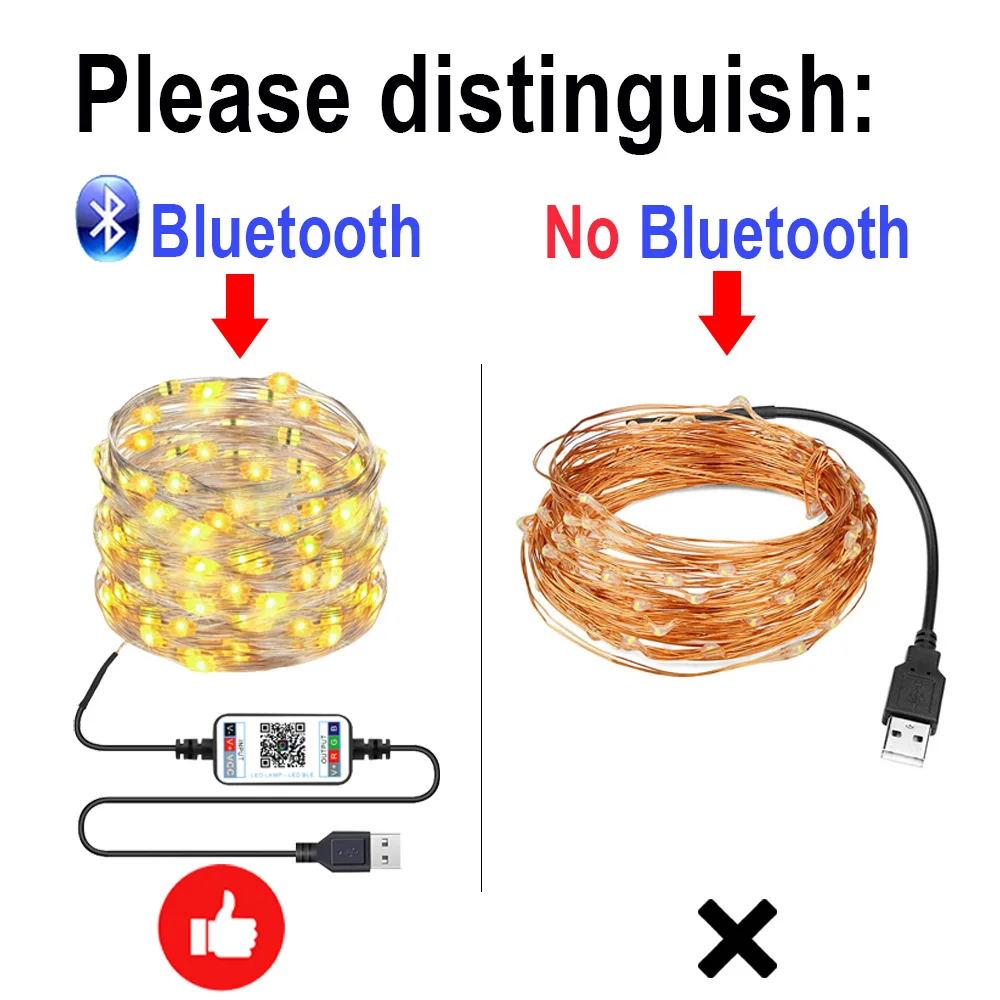 Рождественсветильник RGB Гирлянда с Bluetooth, USB, 2 м20 м, гирлянда из медной проволоки, светодиодная гирлянда, Рождественская елка, Новогодняя декоративная лампа
