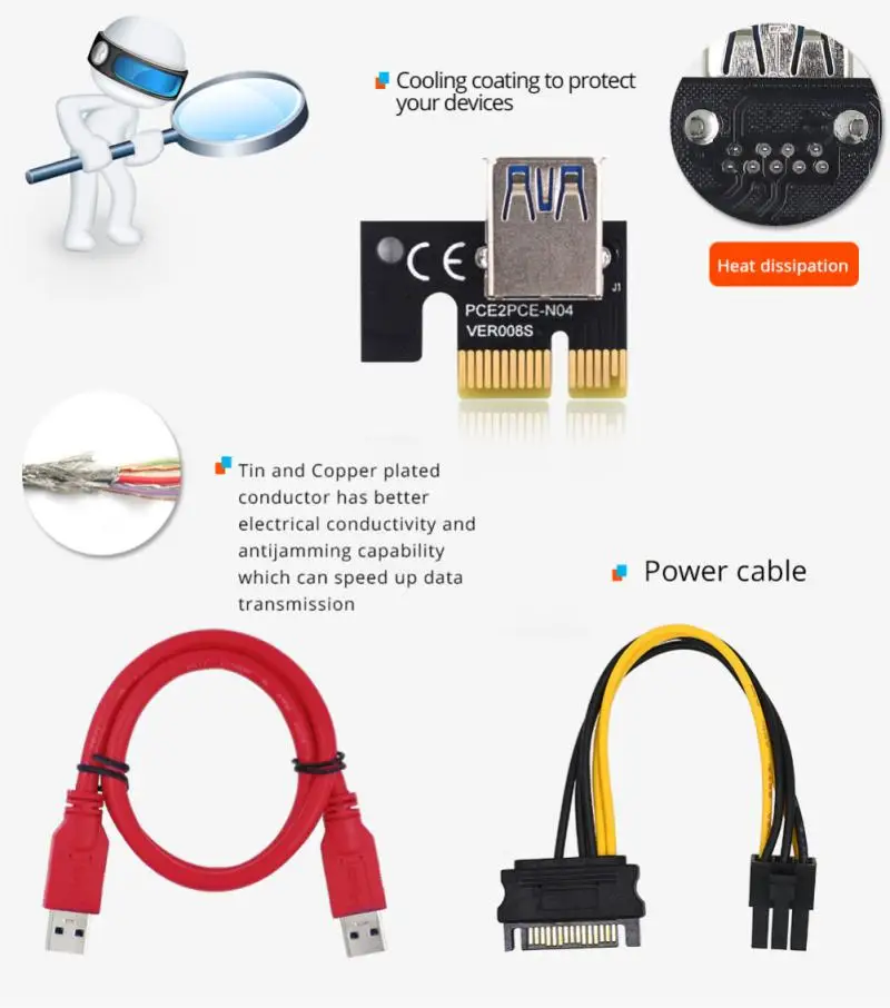 Адаптер PCI-E GPU отличается стабильным сопротивлением и имеет 13 светодиодный светильник для отображения рабочих состояний.