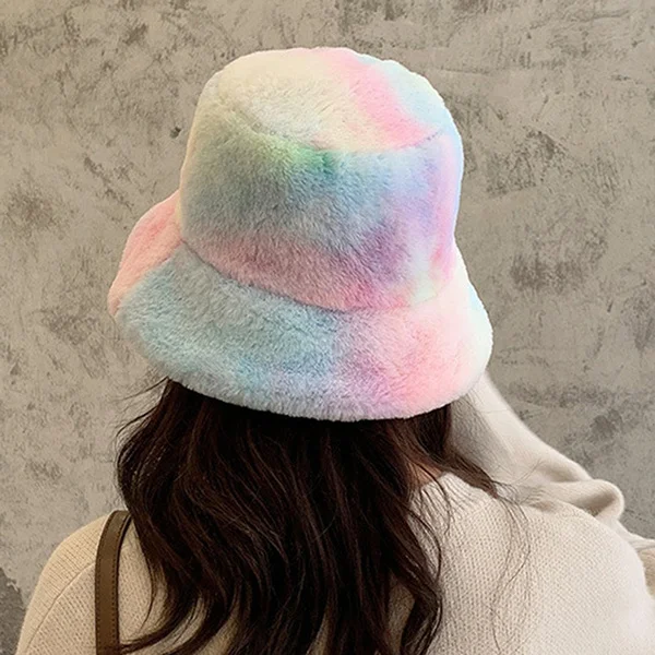 Модная женская плюшевая зимняя теплая сохраняющая радугу шапка-Пана...