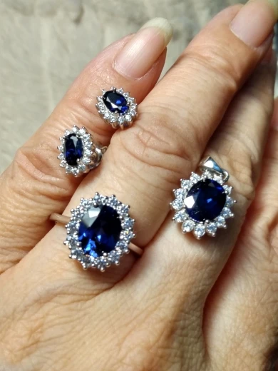 Всё в этот набор оказался довольно оттенок (не тусклая или слишком темные) синего цвета, И хороший размер для полноценный ансамбль, несмотря на то, что может иметь предпочтительный чуть больше серьги. Центрального камня на кольцом выглядит составит около 7x9 мм, имейте это в виду при выборе размера эквивалент около 1,75 карат. Цепь было не прилагаются с подвеской. Это еще один из любимых продавцов на здесь, и я хочу, чтобы держать при покупке у их.