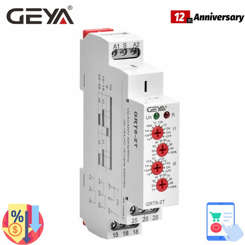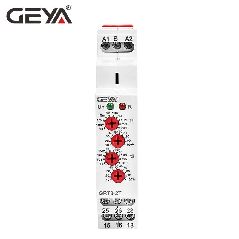 GEYA GRT8-2T реле с двойной задержкой таймера AC230V или ACDC12V-240V DPDT реле типа Din-рейка реле с задержкой времени