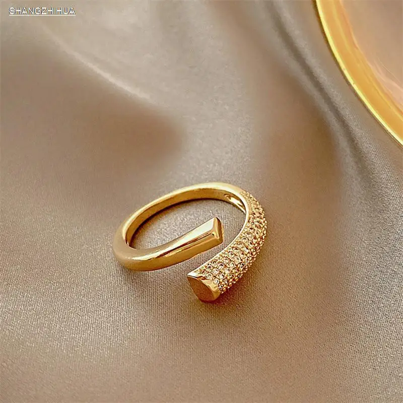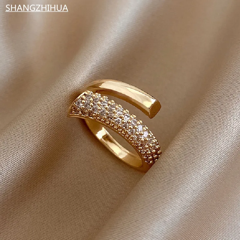 SHANGZHIHUA Новинка 2021 роскошное циркониевое медное регулируемое кольцо-это винтажное изысканное необычное ювелирное изделие подарок аксессуар для женщин