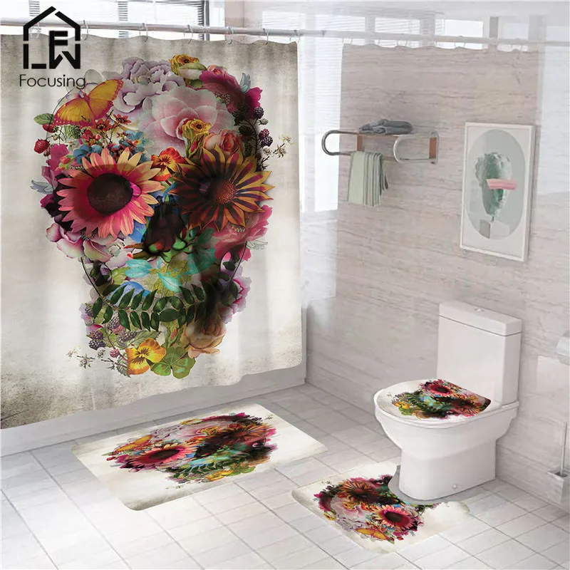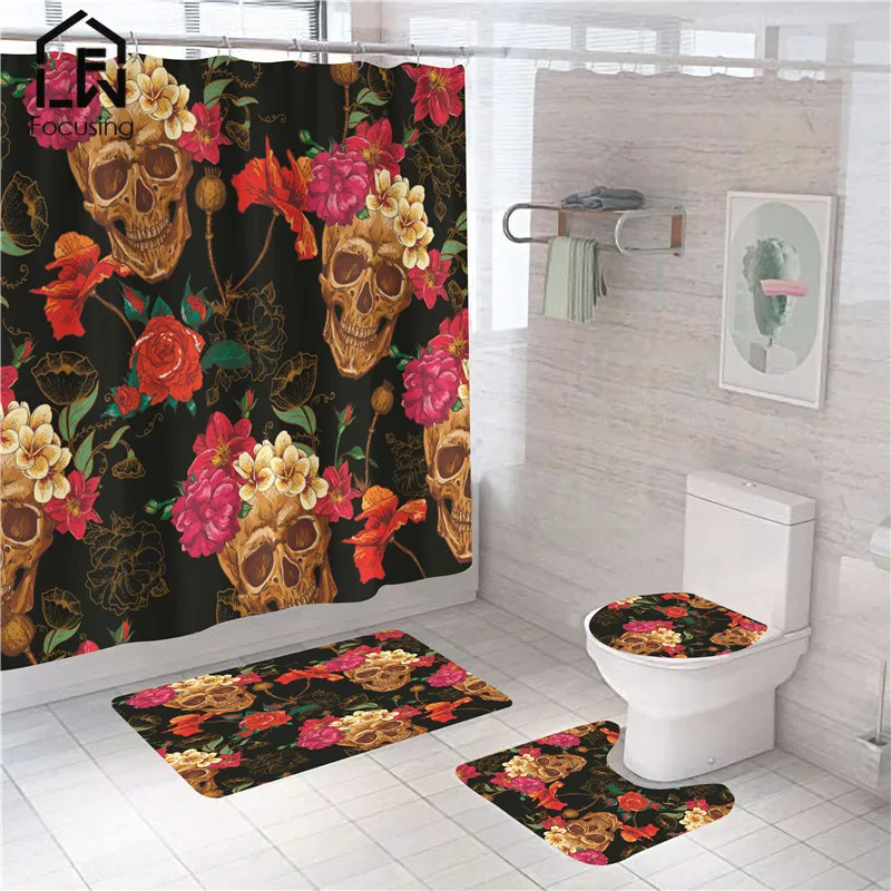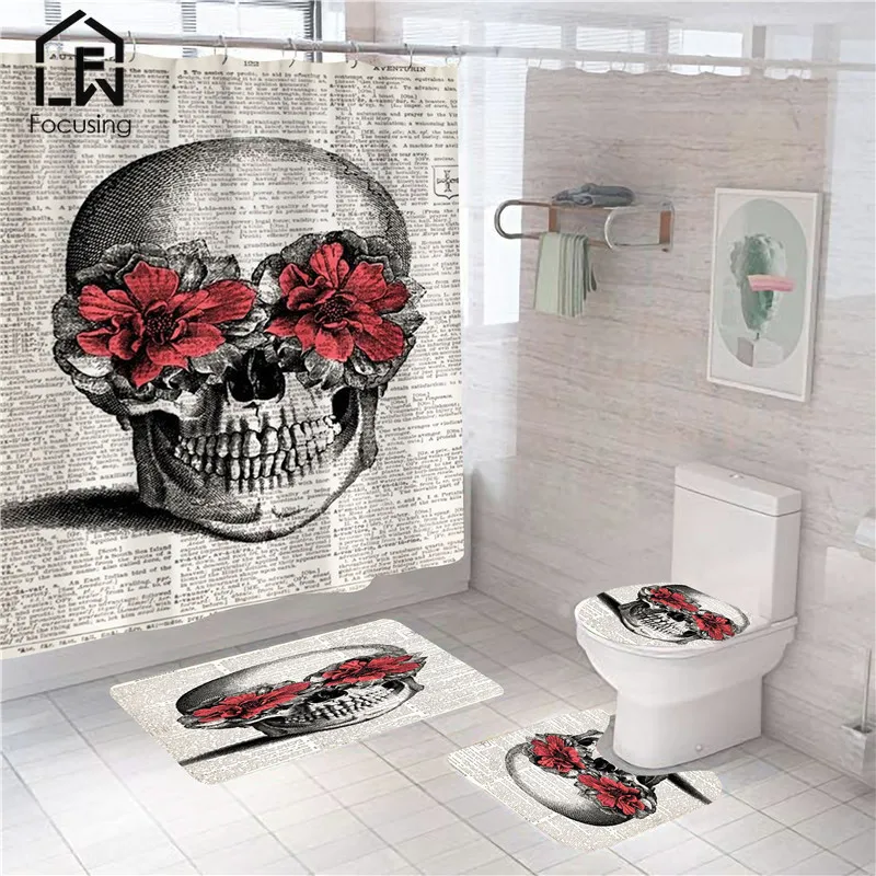 Название: скелет с красными цветами, роза, принт, занавеска для душа, Череп, Хэллоуин, фестиваль, занавеска для ванной, набор ковриков для ванной, аксессуары для унитаза