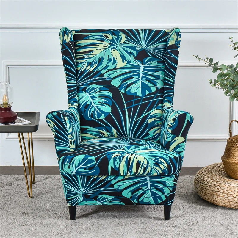 Эластичный Чехол для стула с крыльями, эластичный чехол из спандекса с тропическими растениями для расслабляющих кресел, чехол для дивана, защита мебели, чехол для ног