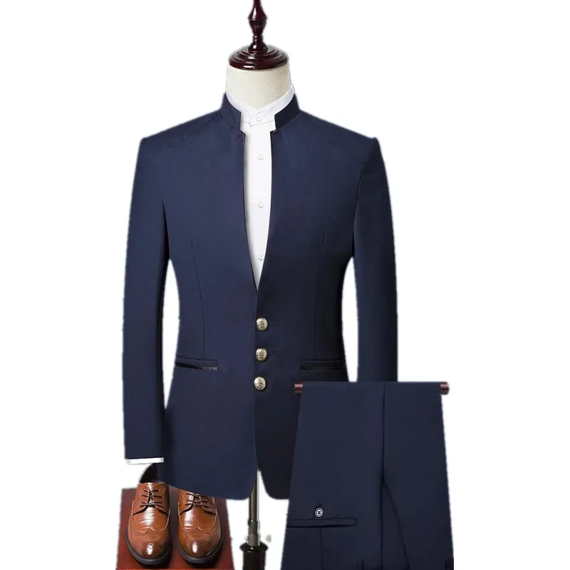 Красивый мужской костюм, классический стиль, блейзер с воротником-стойкой, мужской облегающий костюм для свадьбы, смокинг для жениха (пиджак + брюки)