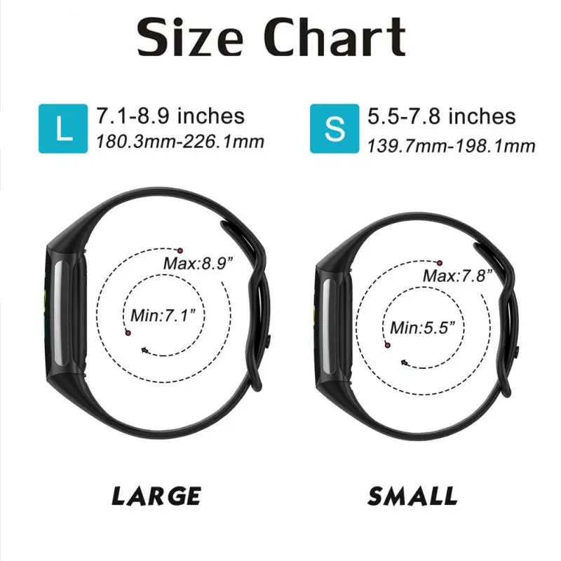 2. Группа Размеры: маленький Размеры подходит для 5,5 "-7,8" (139,7 мм-198,1 мм) циферблатом и широким ремешком; Большой Размеры подходит для 7,1 "-8,9" (180,3 мм-226,1 мм) запястья; размер может быть скорректирован в соответствии с обстоятельствами индивидуального запястья, идеально подходит для бега, плавания, верховой езды, тренировок, вечеринок, скалолазания, походов, путешествий и других видов активного отдыха.