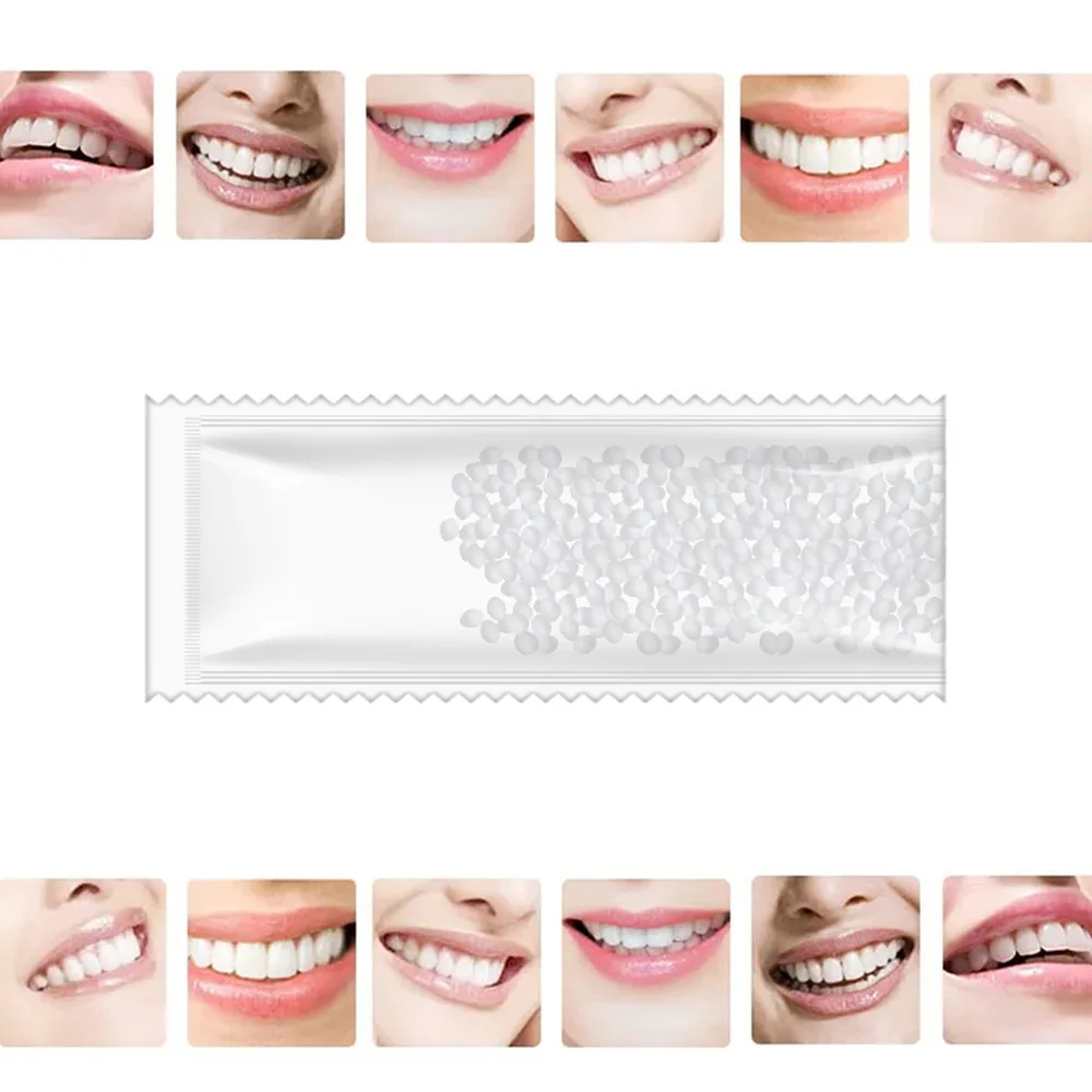 1. В соответствии с размером недостающих зубов (12 гранул, более или менее не имеет значения.) Положите его в кипящую горячую воду (вода должна быть выше 130 градусов, чтобы смягчить и стать гибкой), перемешайте ложкой несколько раз, и материал сольется. Как резиновая грязь, ее можно формовать по желанию. 2. Через минуту или около того белые частицы становятся полупрозрачными. Вы можете формировать зубы. Дополнительный материал может помочь зафиксировать заднюю часть прилегающих зубов. 3. После охлаждения при комнатной температуре материал затвердевает. Вы можете надеть его на отсутствующий зуб (краску в холодной воде для ускорения охлаждения) 4. Если протез имеет отпечатки пальцев, после формовки его можно слегка отполировать тонкой наждачной бумагой.