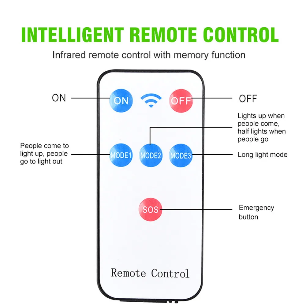 Угол движения: 120 градусовРасстояние движения: прибл. 10-26ftВремя зарядки: 6-8 часовУровень водонепроницаемости: IP65Режим управления: светильник + датчик движения + дополнительный пульт дистанционного управленияРасстояние дистанционного управления: 10 м/39 футов